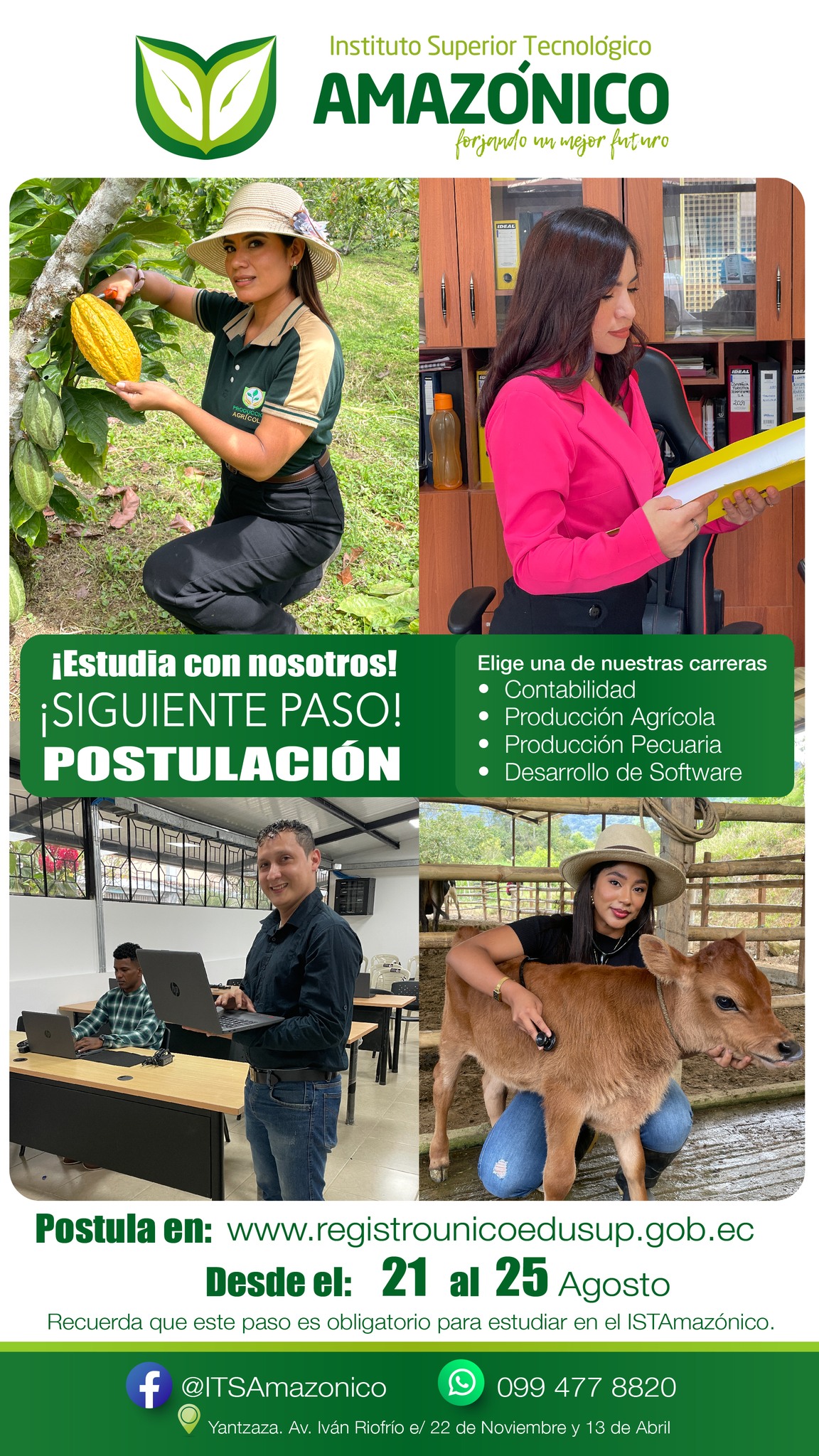 ¡Es momento de postular a una carrera en el INSTITUTO SUPERIOR TECNOLÓGICO AMAZÓNICO, el único instituto público de Zamora Chinchipe!